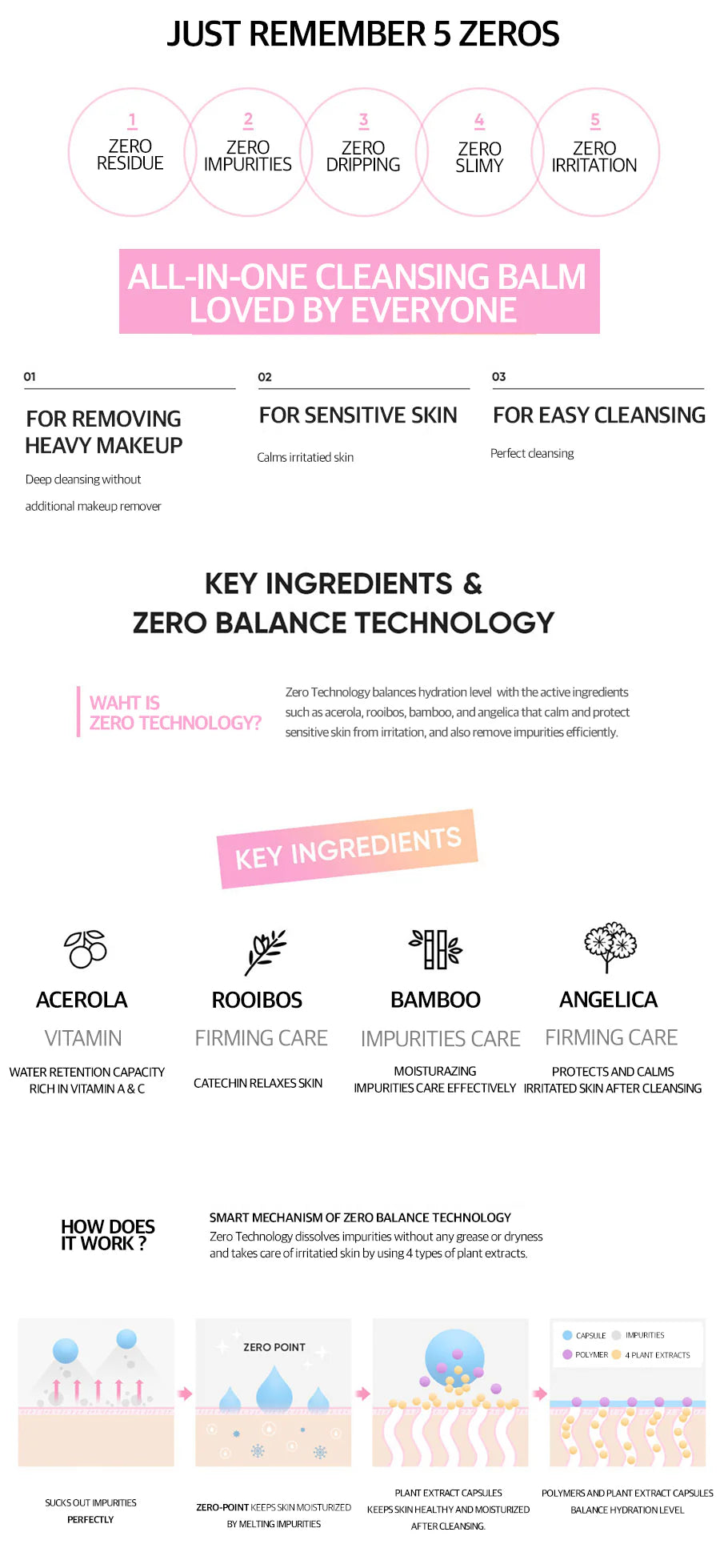 Clean it Zero 3-in-1 Cleansing Balm Original is a hypoallergenic cleanser that transforms from sherbet-like texture into smooth oil when applied onto your skin. Developed to remove even waterproof makeup and all of your skin’s impurities in just one step. Zero Balance Technology deeply cleanses without stripping the skin, leaving it hydrated and fresh.