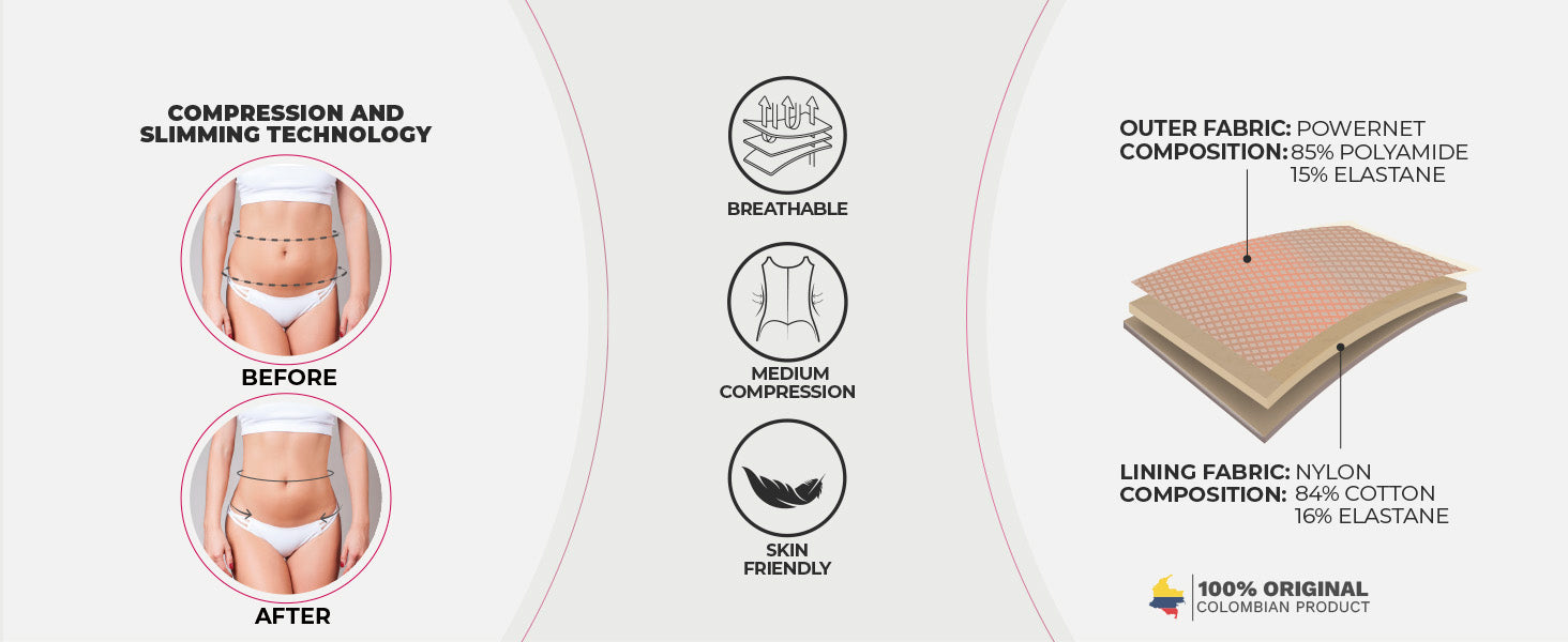 - MADE OF FABRICS THAT COMFORT YOU: Stay comfy, fresh, and move as you want since this shapewear for women tummy control is made of soft breathable fabrics that will help ease your daily routine. Our BBL faja stage 2 combines an outer Powernet lining and an inner Nylon that give your body the compression it needs to bring back everything to its place. Besides that, there's a cool touch lycra lining that will keep you fresh even on the hardest day.