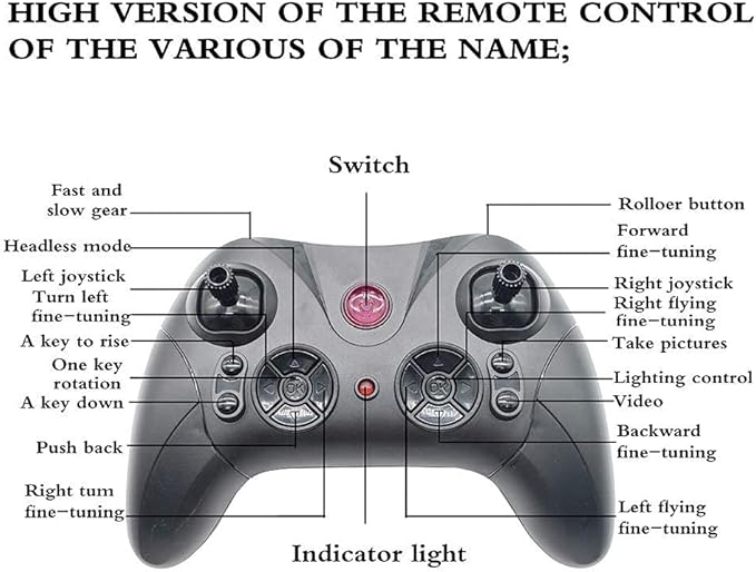 Altitude Hold - Track Flight - Altitude Hold - Headless Mode -One Key Return - Roll 360 Flights -6 Axis Gyroscope - One- key take off (up) One- key landing (down)